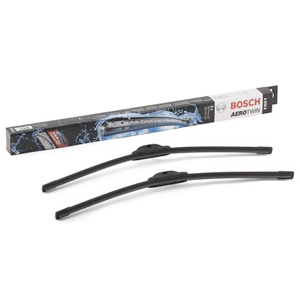 Vorne Scheibenwischer BOSCH AeroTwin A933S (Vorne, 2 Wischblätter) für Mercedes C-Klasse T-Modell S203 Kombi 07.2003-08.2007 mit Originaladapter (2003, 2004, 2005, 2006, 2007). Hersteller: BOSCH. Länge: Fahrerseite - 550 mm, Beifahrerseite - 550 mm. Inhalt: 2 Wischblätter. Einbauposition: Vorne.