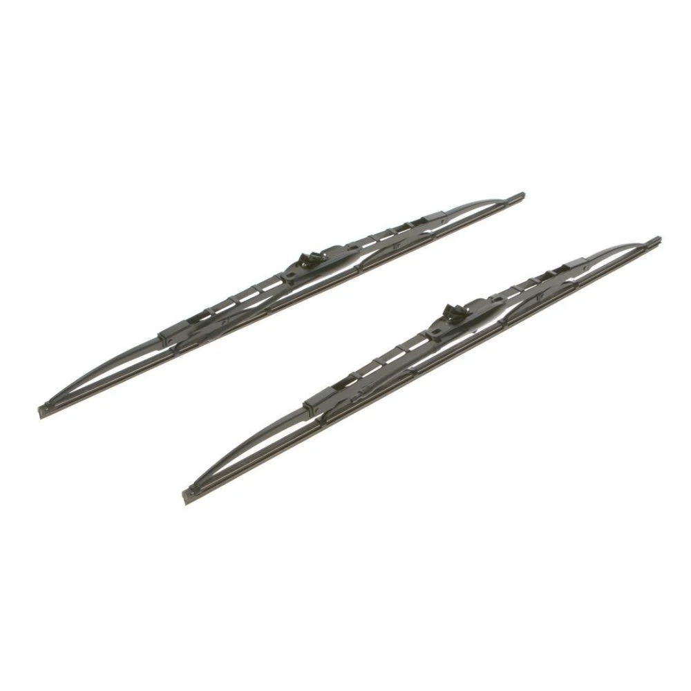 Vorne Scheibenwischer BOSCH Twin 405 (Vorne, 2 Wischblätter) für Peugeot 405 Limousine mit Dusen am Wischerblatt (1987, 1988, 1989, 1990, 1991, 1992, 1993, 1994, 1995). Hersteller: BOSCH. Länge: Fahrerseite - 550 mm, Beifahrerseite - 550 mm. Inhalt: 2 Wischblätter. Einbauposition: Vorne.