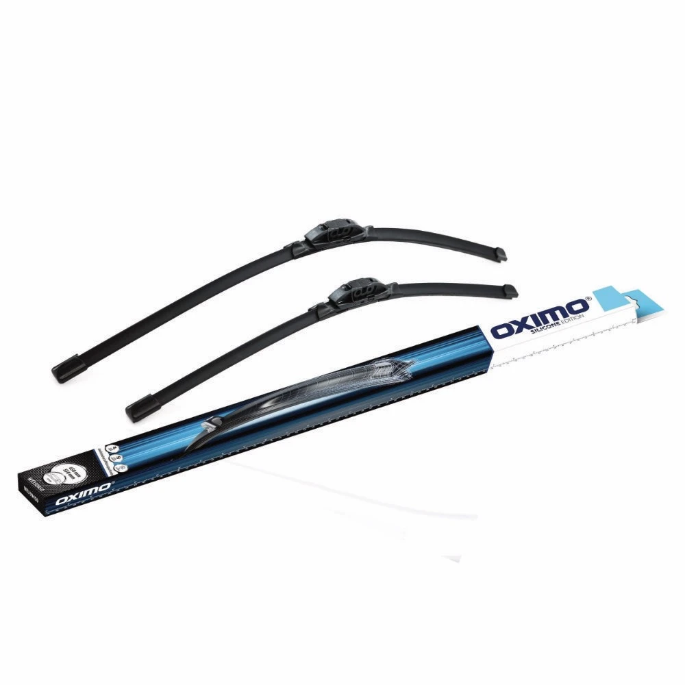 Vorne Scheibenwischer Oximo Silicone OEM WE350450 (Vorne, 2 Wischblätter) für Renault Grand Scenic JM MPV 05.2003-11.2004 mit Originaladapter (2003, 2004). Hersteller: Oximo. Länge: Fahrerseite - 650 mm, Beifahrerseite - 550 mm. Inhalt: 2 Wischblätter. Einbauposition: Vorne.