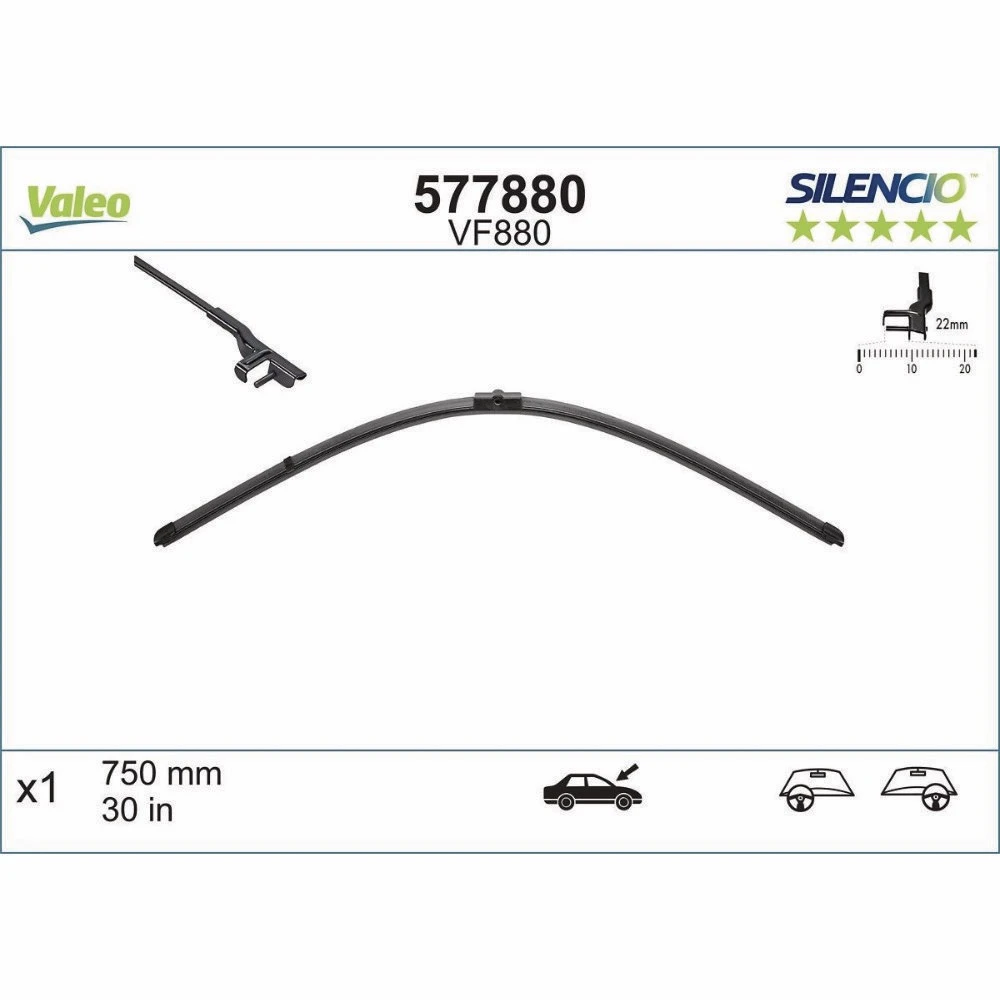 Vorne Scheibenwischer Valeo Silencio Flat VF880 (Vorne, 1 Wischblatt) für Audi A2 Schrägheck 07.2001-08.2005 Seitenadapter (2001, 2002, 2003, 2004, 2005). Hersteller: Valeo. Länge: Vorne-Wischer 750 mm. Inhalt: 1 Wischblatt. Einbauposition: Vorne.